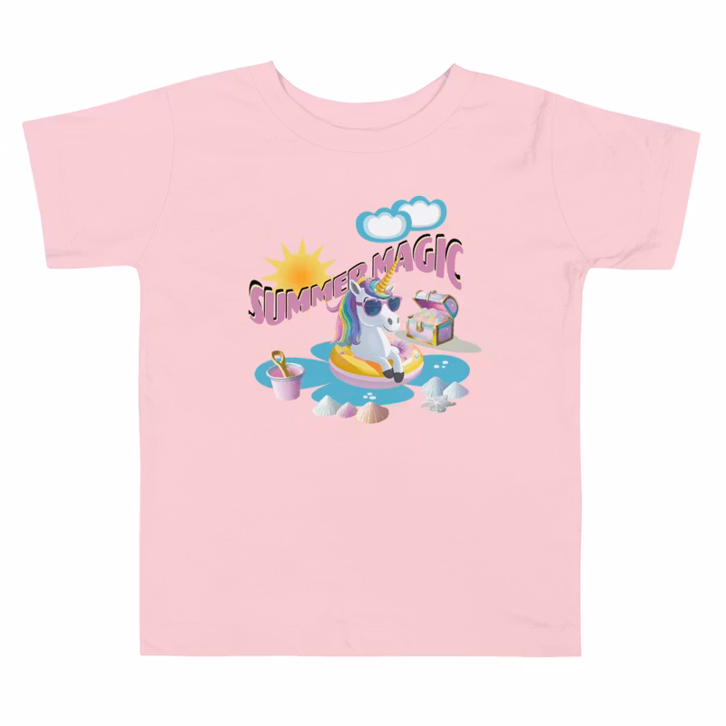 Pink Summer Magic Unicorn Toddler Short Sleeve T-shirt