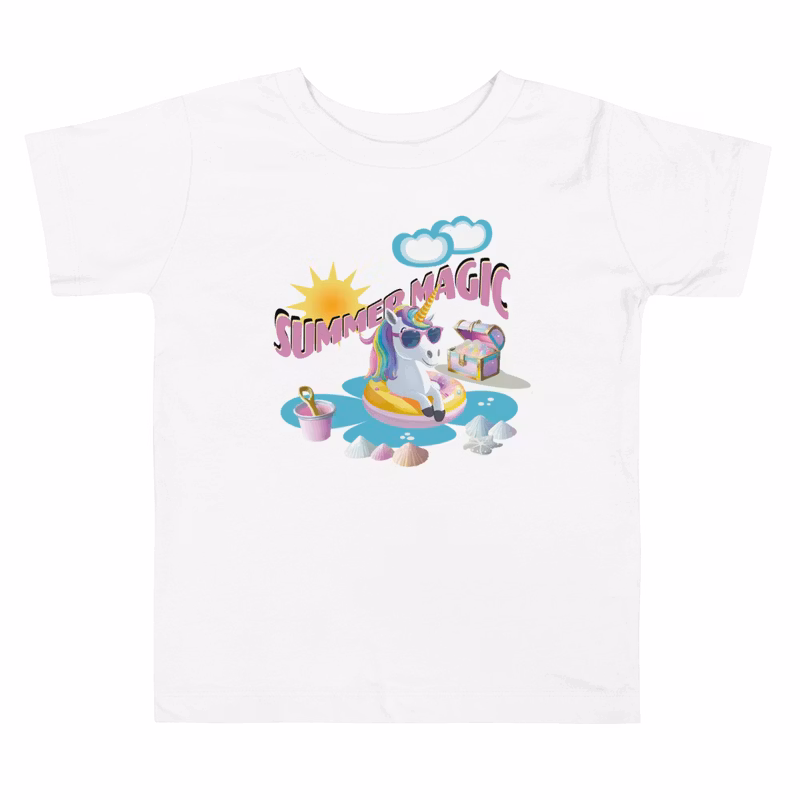 Ingen magisk sommar utan enhörningar! Vår mjuka T-shirt för småbarn, gjord i lätt och mjuk ringspunnen bomull, är perfekt för de yngre barnen att leka och röra