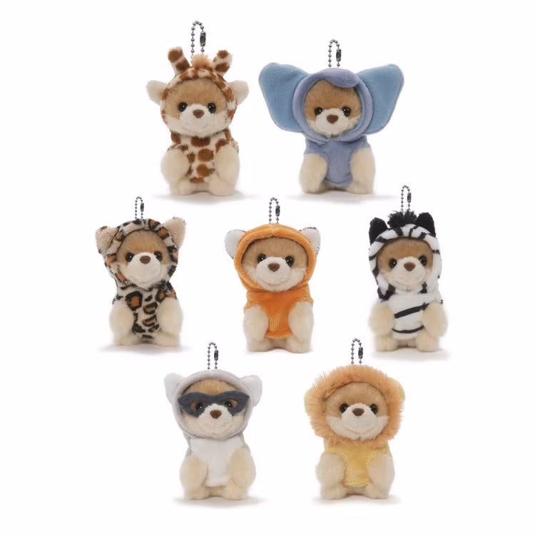 En minivariant av supergulliga kändishunden Boo®. Finns i sju olika modeller och är av mjukaste plysch! Vilken som blir just din blir en överraskning! På varje liten hund sitter en karbinhake för att kunna fästa Boo på jackan, väskan etc. Ca 7 cm hög. Från Gund®