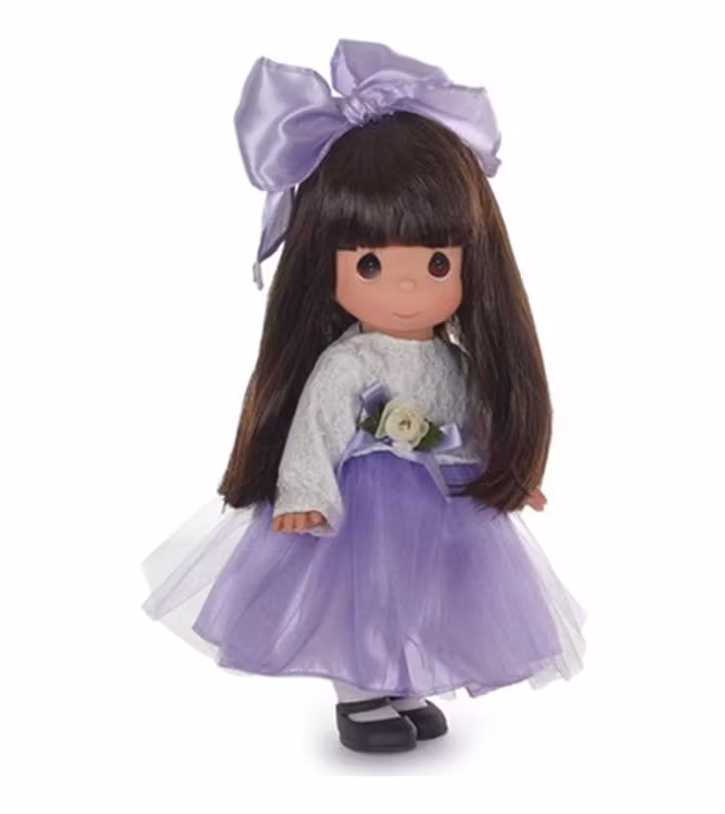 Docka i vinyl med stor rosett i håret från Precious Moments Dolls®. Design: Linda Rick. Längd 32 cm. OBS! Ej lämplig för barn under 3 år - innehåller smådelar.
